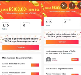 Desta forma o usuário que convidou o amigo ganha R$2.00, e quanto mais esta pessoa usar o TikTok mais você ganha de recompensa podendo ganhar até R$4.00 por cada novo integrante do TikTok que atingir a marca de 10 dias assistindo a vídeos da plataforma.