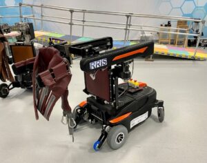 A estrutura do robô parece uma cadeira de rodas motorizada. Ele é feito de equipamento de proteção que chega até a cintura do idoso e é cercado por sensores que podem detectar quando uma pessoa perde o equilíbrio.